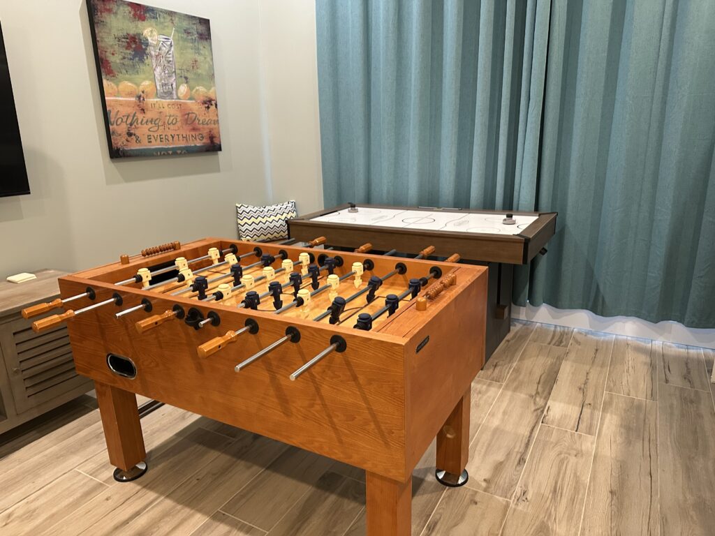The rec room includes foosball, air hockey, Xbox 360 (with family-friendly games), and toys for younger kids.